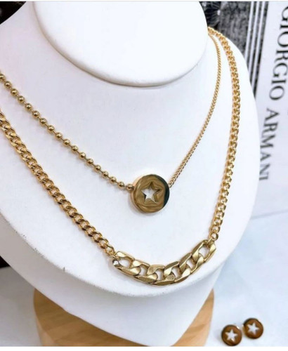ناموجودگردنبندپلاک نگین سبز استیل کاملاً طرح طلاهمراه بازنجیر رنگ ثابت