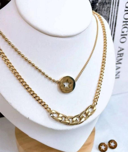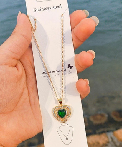 گردنبندپلاک نگین سبز استیل کاملاً طرح طلاهمراه بازنجیر رنگ ثابت