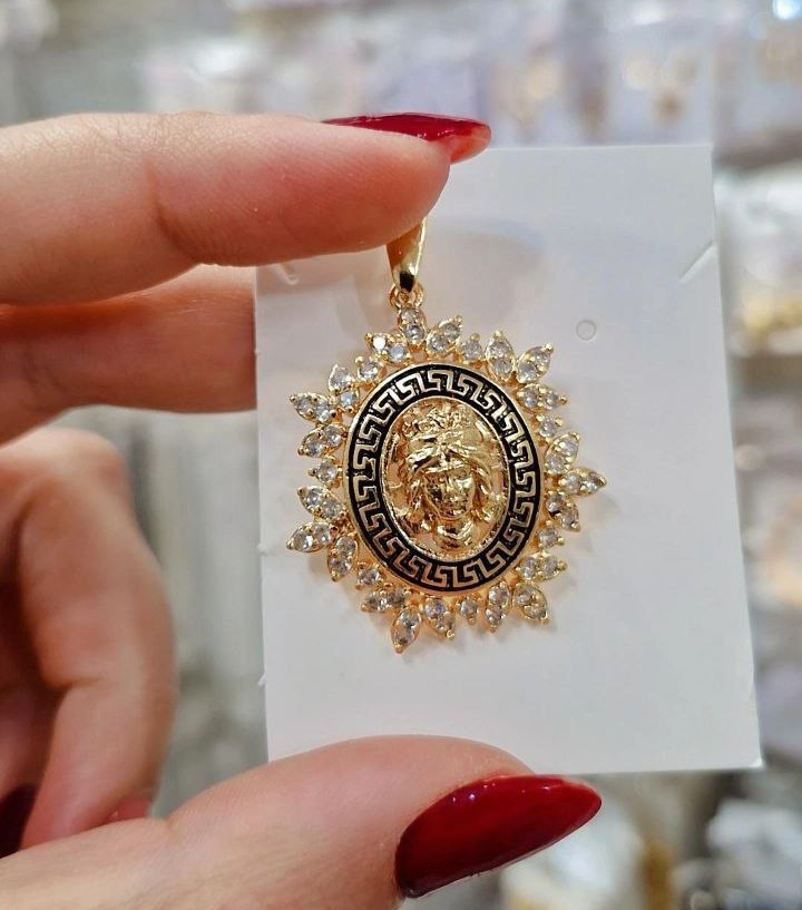 پلاک مدل ورساچه نگینی طرح طلا مدل خورشیدی